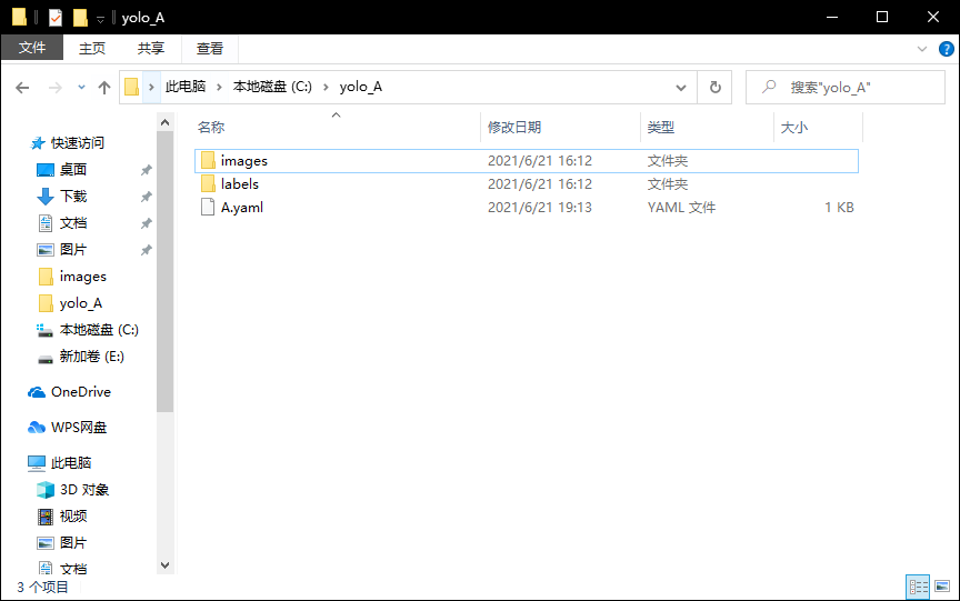 (所有的文件放在yolo_A文件夹下,子文件夹images用来存放中国红旗图片,labels文件夹(这个文件夹目前先不管)用来存储标注信息。A.yaml文件用来存放一些目录信息和标志物分类(这个文件创建即可))