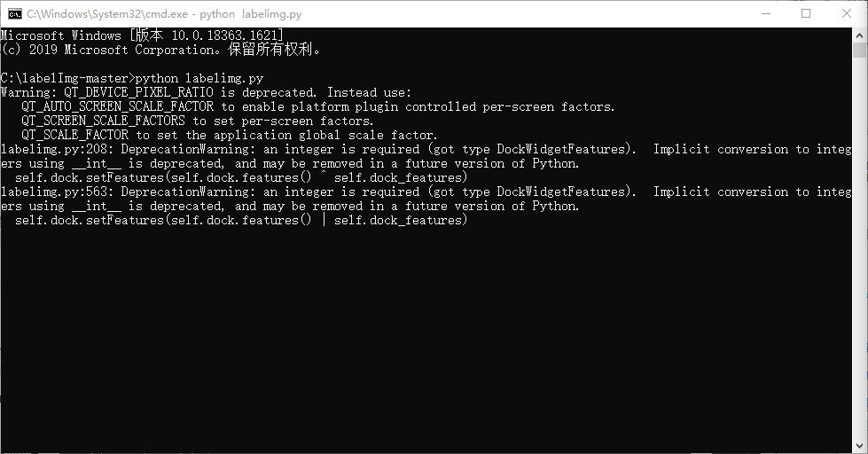 安装依赖后,在labelImg-master文件夹下打开cmd,输入