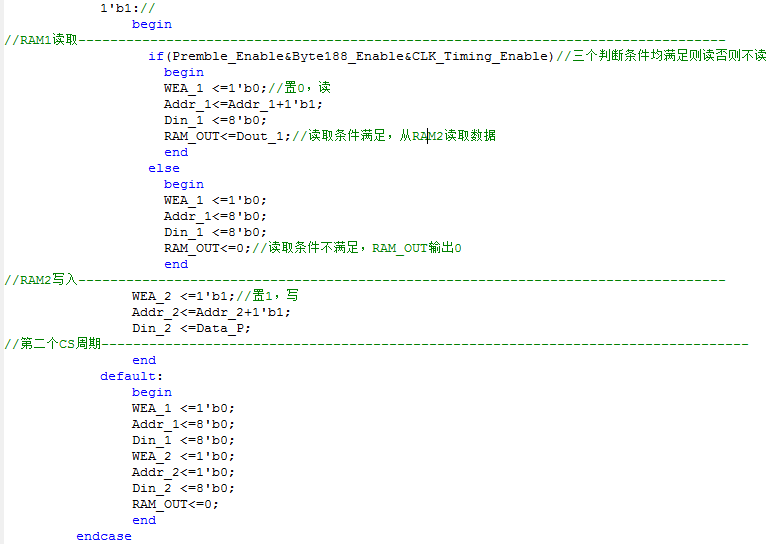 在通过上述几个小节的处理之后得到多个使能信号,如Premble_Enable、CLK_Timing_Enable、Byte188_Enable等,这些信号共同构成了读写RAM的控制使能。