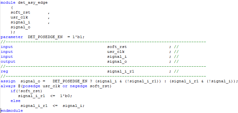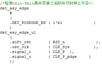 输入此部分的数据为经过串并变换之后的并行数据和并行时钟,在时钟的上升沿进行数据的存储与读取。所以,首先需要检测并行时钟信号的上升沿,如下: