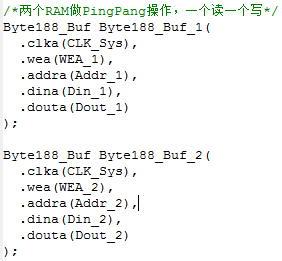 存储部分,采用两个RAM做乒乓操作,当一个读时,另外一个写。如下:
