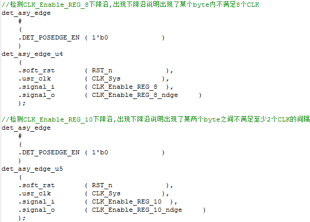 产生变量CLK_Enable_REG_8_ndge和CLK_Enable_REG_10_ndge。通过判断这两个变量是否产生,来给使能信号赋值,如下: