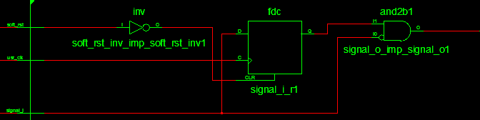 对边沿的检测可以通过将输入信号存储一个周期再输出取反与最新一周期的数据想与,上升沿和下降沿的检测正好相反。相应的RTL图如下所示: