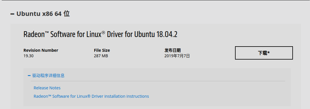 前情:本人前段时间将显卡由AMD RX470更换为AMD 5700,在一段时间后重新开启Ubuntu后,发现显示器分辨率为1366*768。下意识认为是显卡驱动未更新成功,试过使用update及upgrade希望能够自动更新。也尝试bing Ubuntu下的5700驱动安装,或许是个人搜索技能不过关,未找到相关认为较好的答案。因此果断上AMD的官网,发现官方竟然有提供Ubuntu x86 64bit的官方驱动,于是,有了这篇笔记。