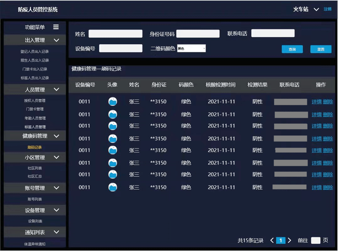 ● 刷身份证或扫健康码均可,按需接入国康码和全国各省市健康码