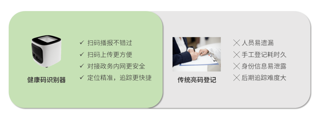 ● 动态识别绿/黄/红健康码,有效预防截图、盗用、过期