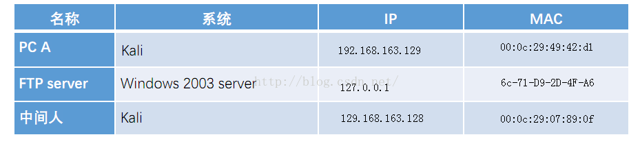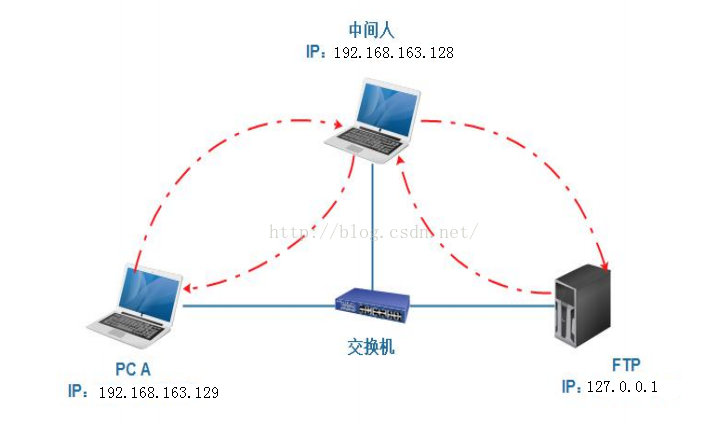 PC A 访问 本网络的一台FTPserver主机,中间人进行arp的投毒,获取PC-A和FTPserve之间的回话记录,截获用户名和密码。