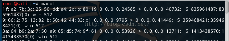 以上就是还单身斑马最近收集整理的关于macof&tcpdump抓包的使用——Mac泛红攻击的全部内容,更多相关macof&tcpdump抓包内容请搜索靠谱客的其他文章。