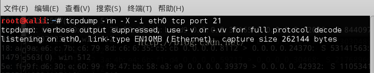 tcpdump -nn -X -i eth0 tcp port 21