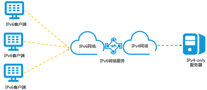IPV6转换服务,是一种有状态的IPv6和IPv4网络地址与协议转换服务。通过IPv6转换服务,具备公网IPv4地址的服务器可快速面向IPv6网络侧用户提供访问服务。
