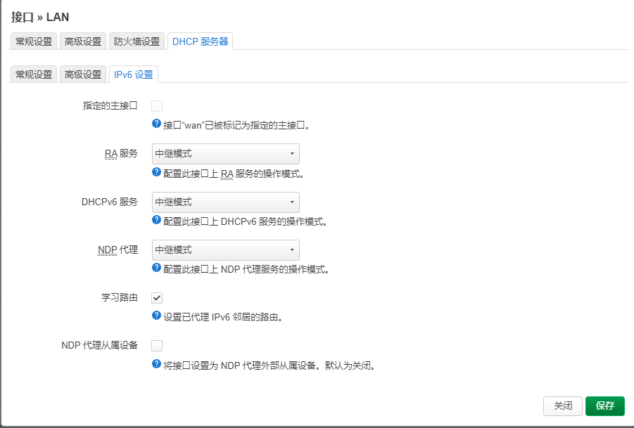 官方的ipv6配置链接:https://blog.x-wrt.com/docs/ipv6/configure/02-ipv6-lan-config.html