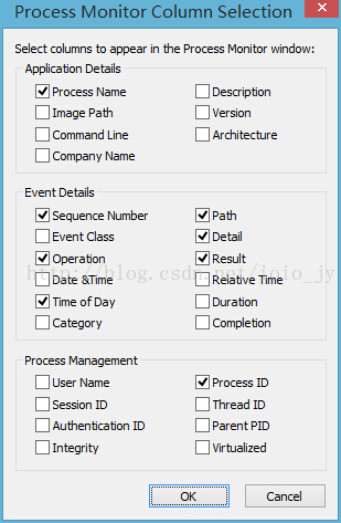 图10 Process Monitor列目选择