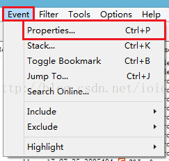 选择“事件(Event)菜单”中的“栈(Stack)”菜单项就能够打开事件属性对话框,并直接打开栈页。