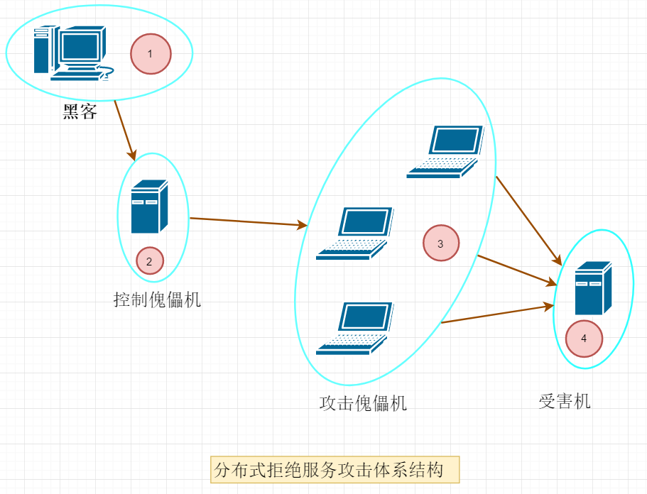分布式拒绝服务攻击体系结构: