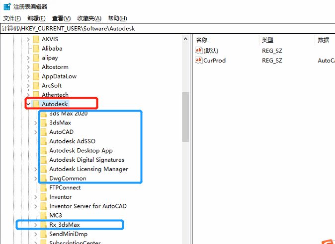 只要看到Autodesk字样的键值就给老子删!没有面子!!!