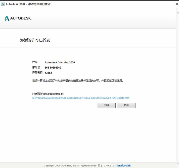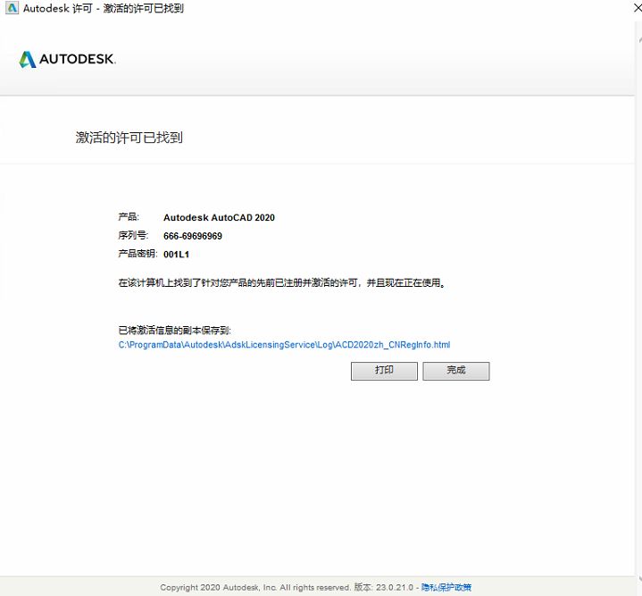 单击立即启动激活后,显示激活的许可已找到。(与3dsmax2020同理,此时无需再激活,完成进入CAD即可正常使用)