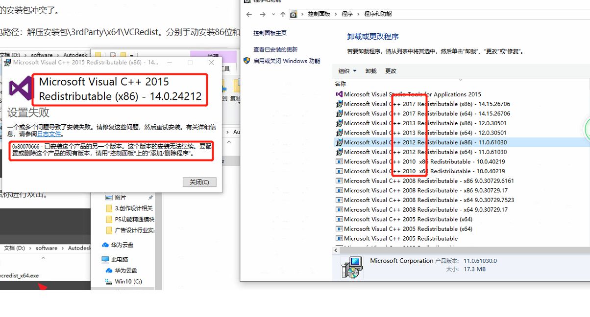 遗漏卸载软件分析。卸载控制面板中遗留的“Visual c++系”版本相关,因为在最后清理注册表完成后,运行安装程序的时候可能会有冲突,导致安装失败回滚。