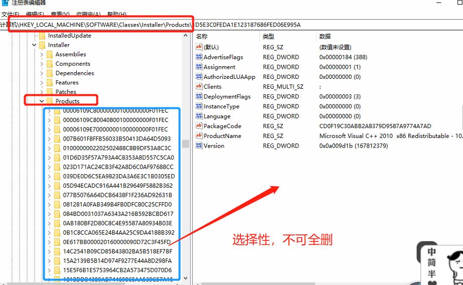 4.第4个位置:找到HKEY_LOCAL_MACHINESOFTWAREClassesInstallerProducts,把Products文件夹直接删除,这样Autodesk产品的注册表就全部删除干净了,这样我们再安装3dmax就不会出现什么问题了。