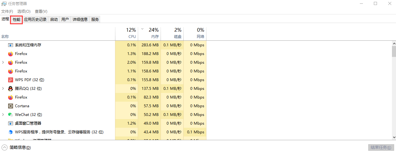 ①快捷键ctrl+shift+esc打开任务管理器