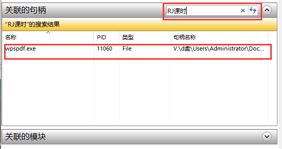 ③在“关联的句柄”处搜索句柄关键词——右击结束进程即可