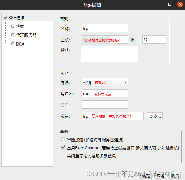 以上就是无限棒棒糖最近收集整理的关于在ubuntu20.04上面通过fianlshell远程ssh服务器1.在ubuntu20.04中安装finalshell2.在应用列表中找到finalshell并打开3.配置云服务器私钥(此处以腾讯云服务器为例)4.通过finalshell连接云服务器的全部内容,更多相关在ubuntu20内容请搜索靠谱客的其他文章。
