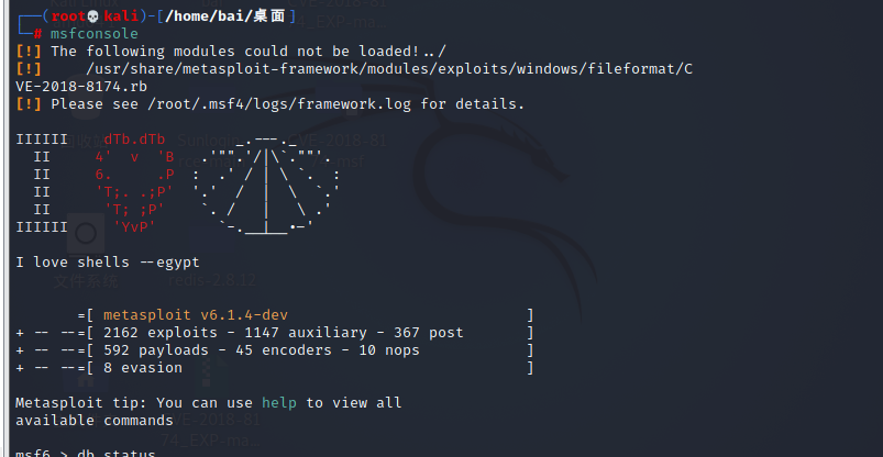 5.进行msfdb 数据库初始化,配置数据库相关信息:msfdb init