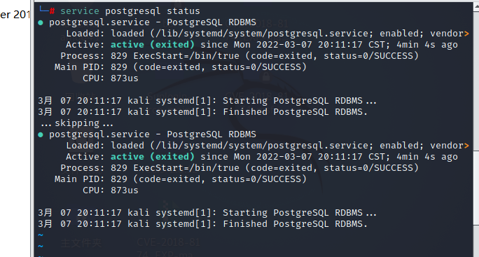 由上图可以看出:Active:active (exited)说明此时数据库已经打开