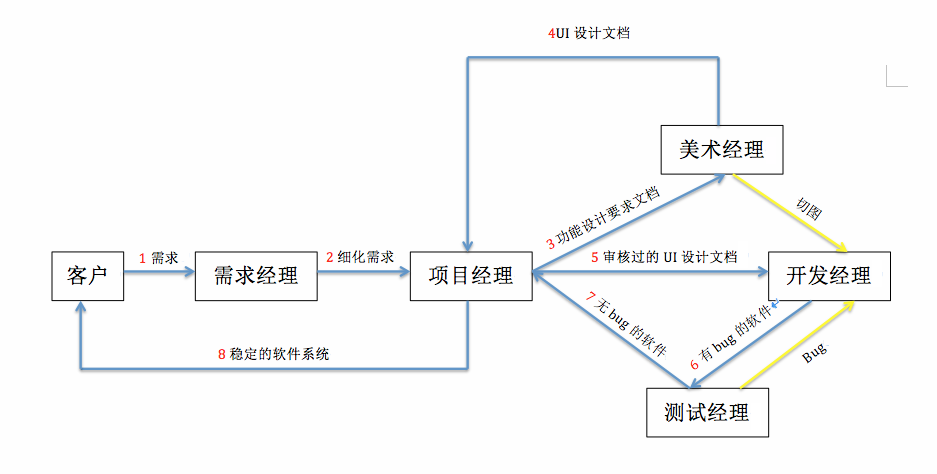 假设团队非常小,需求经理的角色由项目经理担当,測试经理的角色有开发经理担当