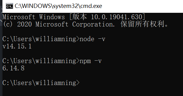 下载最新版node.js[推荐], 傻瓜式安装即可 检测安装成功 node -v npm -v 正确显示即可.
