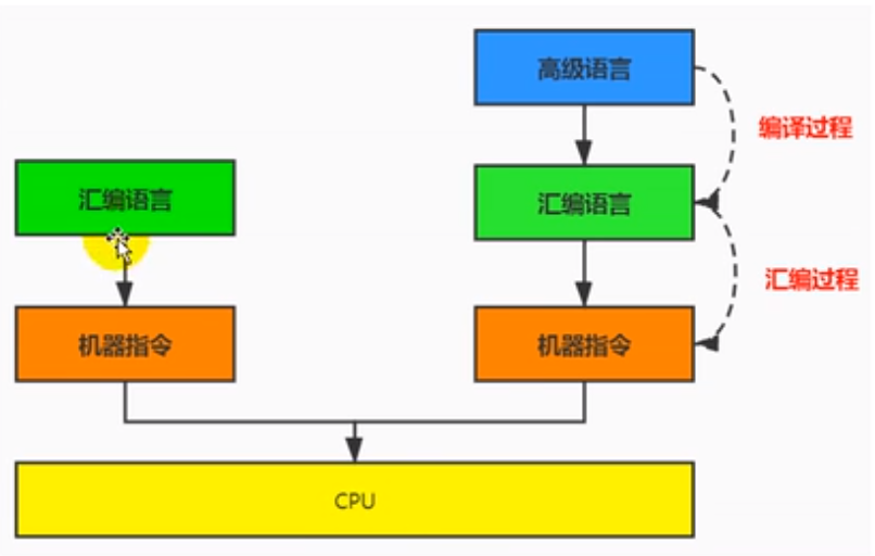 - 在不同的硬件平台,汇编语言对应着不同的机器语言指令集,通过汇编过程转换成机器指令。由于计算机只认识指令码,所以用汇编语言编写的程序还必须翻译成机器指令码,计算机才能识别和执行。