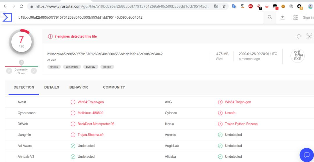 virustotal.com的检测率虽然不太乐观,但是对于国内而言,也能满足日常需求了。