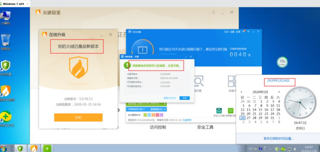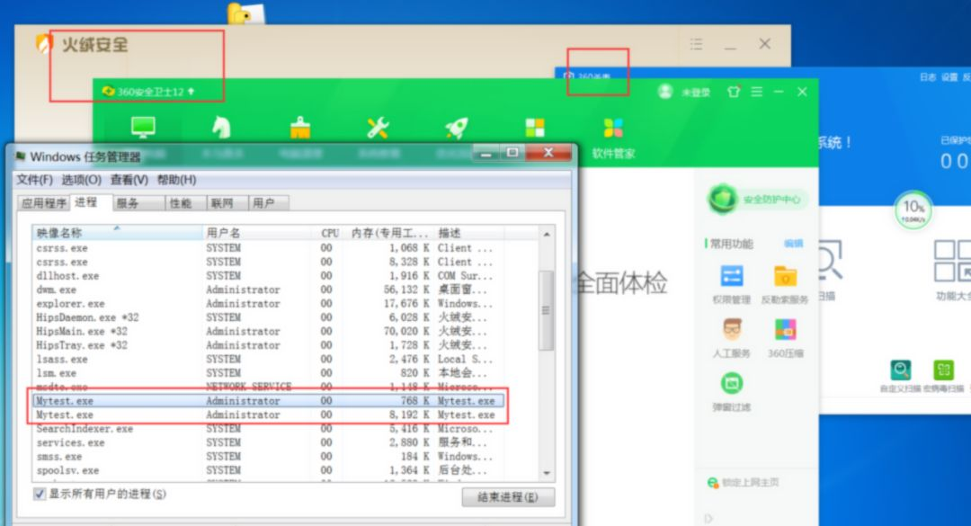 在win7企业版上 360全家桶+火绒全部更新到最新的情况下测试