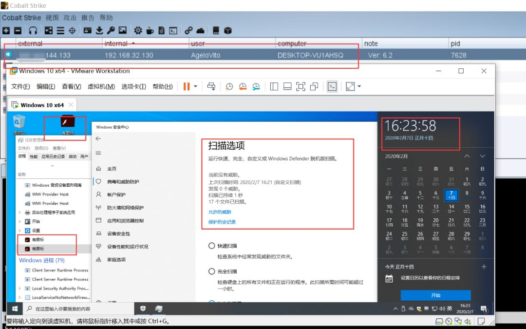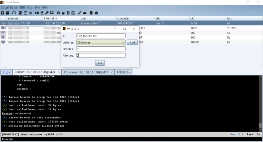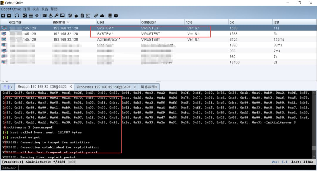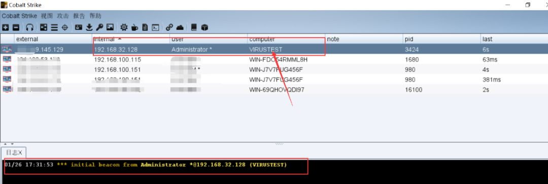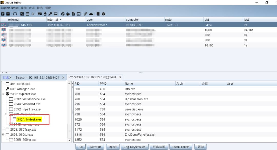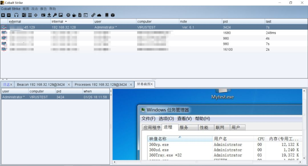 Cobalt Strike成功上线,且360+火绒没有任何拦截或者提示的行为