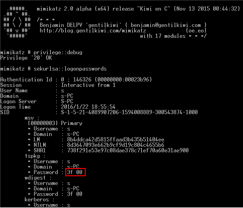 以上就是奋斗滑板最近收集整理的关于Mimikatz的使用心得的全部内容,更多相关Mimikatz内容请搜索靠谱客的其他文章。