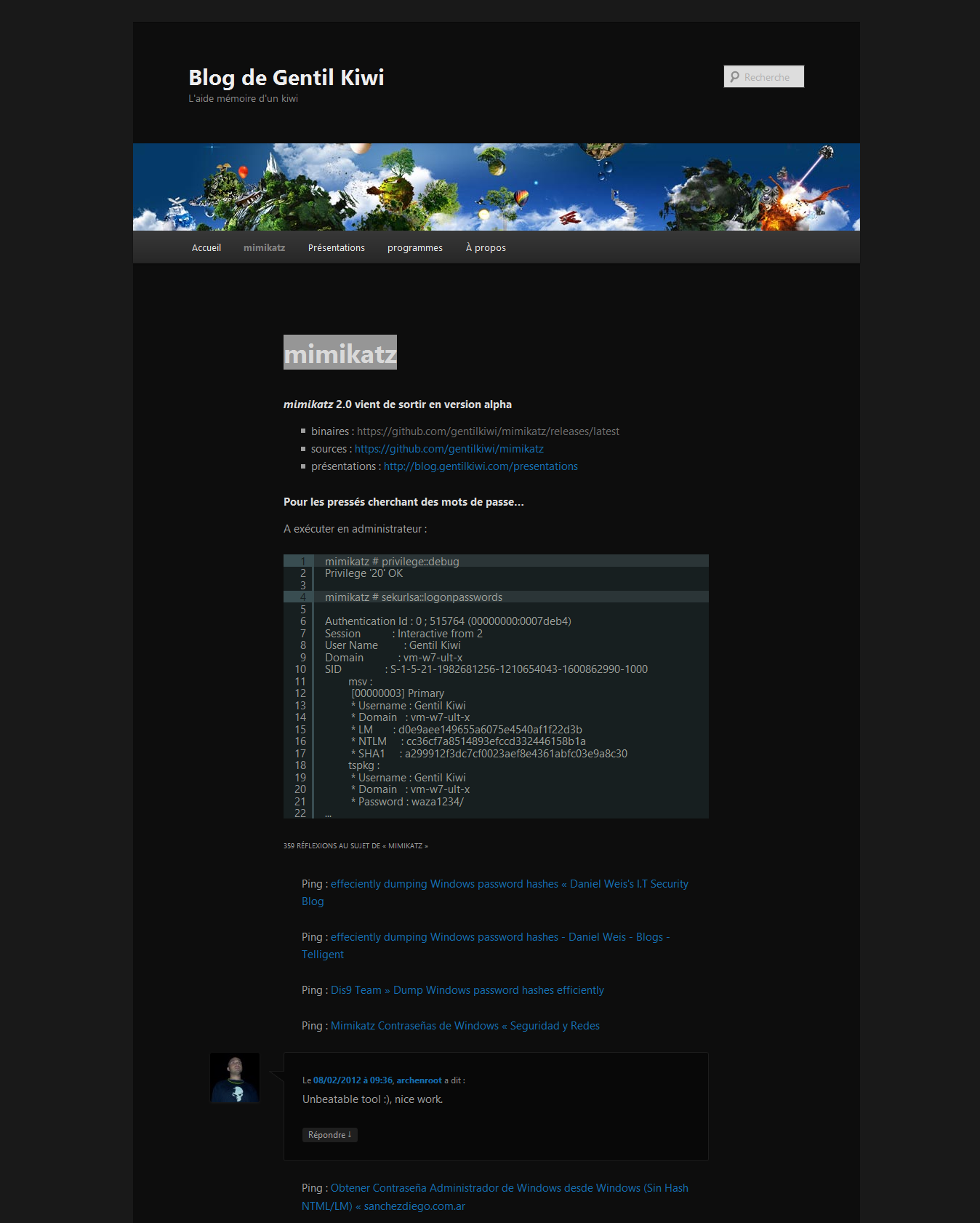 这个软件的作者博客:http://blog.gentilkiwi.com/mimikatz