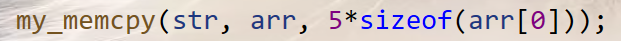 my_memcpy(str, arr, 5*sizeof(arr[0]));