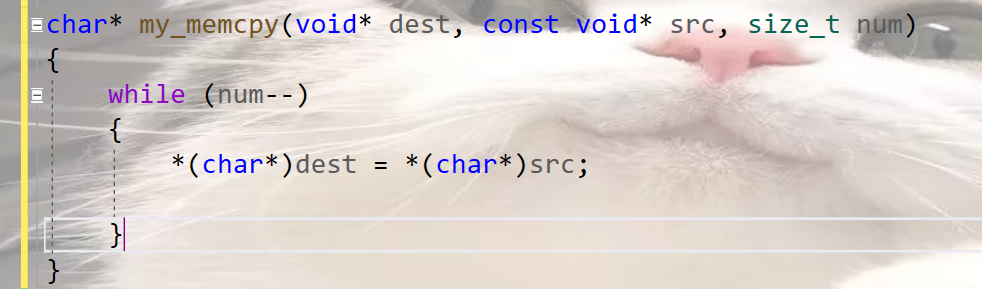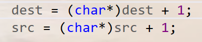 值得注意的是将dest与src强转只是临时的,用的时候强制转换,其他时候还是void*的指针。所以并不能用dest++,src++。而需要用