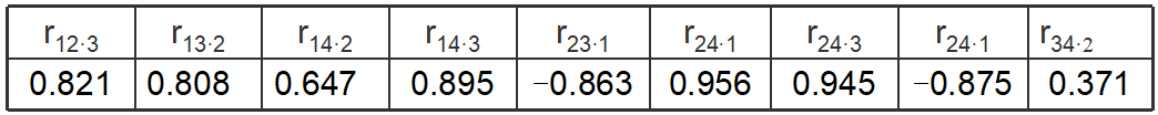 当有4个要素时,则有六个偏相关系数,则称他们为二级偏相关系数