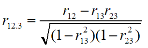 当有3个要素时,有三个偏相关系数,称为一级偏相关系数