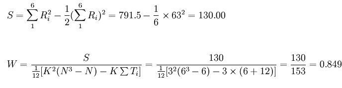 - S—每个被评对象所评等级之和Ri与所有这些和的平均数的离差平方和