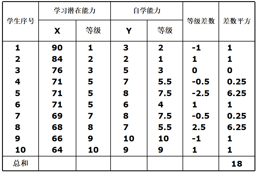 10名高三学生学习潜在能力测验与自学能力测验成绩如下表所示,问两者相关情况如何?