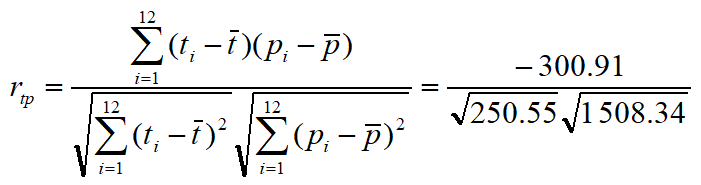 计算结果表明,伦敦市的月平均气温(t)与降水量(p)之间呈负相关,即异向相关