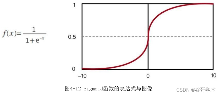 −∞→+∞,而值域则光滑地分布在0到1之间。函数表达式和图像如图4-12所