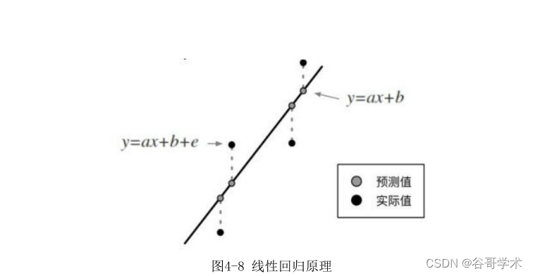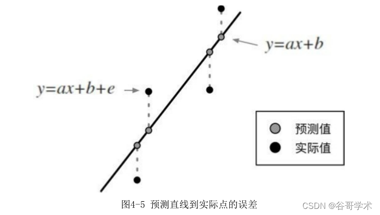 线尽量靠近所有数据点,也就是让预测点距离样本点的误差尽可能小,如图4-
