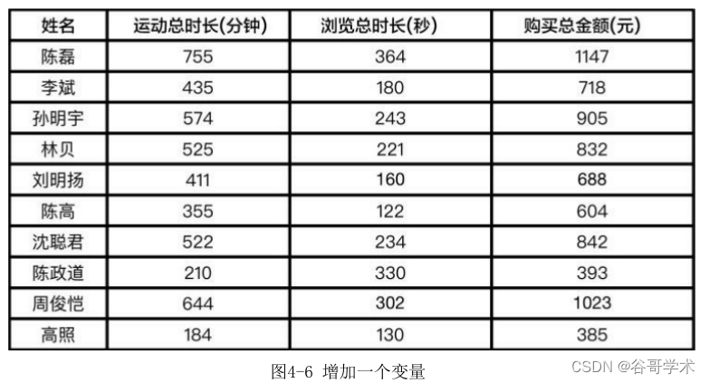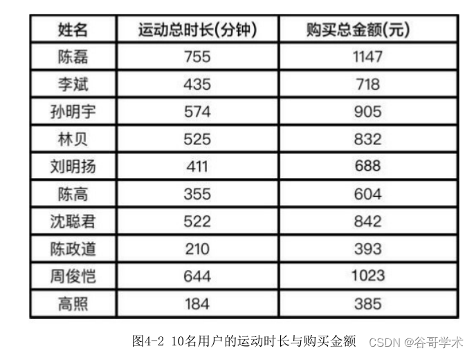 首先取10名用户的运动总时长与商场购买总金额,如图4-2所示。
