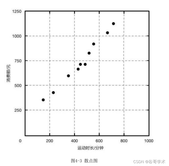 在平面直角坐标系中,能够得到一个散点图,如图4-3所示。