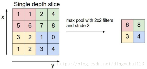 池化,简言之,即取区域平均或最大,如下图所示(图引自cs231n)上图所展示的是取区域最大,即下图左边部分中 左上角2x2的矩阵中6最大,右上角2x2的矩阵中8最大,左下角2x2的矩阵中3最大,右下角2x2的矩阵中4最大,所以得到上图右边部分的结果:6 8 3 4。关于池化的作用最可靠的解释是在尽量保持原数据关系的基础上进行变化降低维度,常用的是平均和最大池化法。