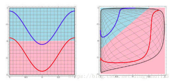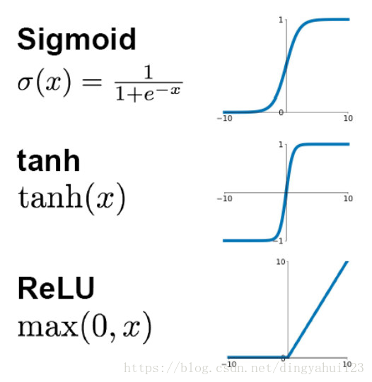 上图可以很形象的解释这个问题,左图用一根线是无法划分的。经过一系列变换后,就变成线性可解的问题了。如果不用激励函数(其实相当于激励函数是f(x) = x),在这种情况下你每一层输出都是上层输入的线性函数,很容易验证,无论你神经网络有多少层,输出都是输入的线性组合,与没有隐藏层效果相当,这种情况就是最原始的感知机(Perceptron)了。正因为上面的原因,我们决定引入非线性函数作为激励函数,这样深层神经网络就有意义了(不再是输入的线性组合,可以逼近任意函数)。最早的想法是sigmoid函数或者tanh函数,输出有界,很容易充当下一层输入(以及一些人的生物解释)。