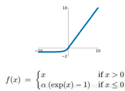 3、Relu:(1)ReLU的输出不是zero-centered;(2)Dead ReLU Problem(神经元坏死现象):某些神经元可能永远不会被激活,导致相应参数永远不会被更新(在负数部分,梯度为0)。产生这种现象的两个原因:参数初始化问题;learning rate太高导致在训练过程中参数更新太大。 解决方法:采用Xavier初始化方法,以及避免将learning rate设置太大或使用adagrad等自动调节learning rate的算法。(3)ReLU不会对数据做幅度压缩,所以数据的幅度会随着模型层数的增加不断扩张。为了解决ReLU的dead cell的情况,发明了Leaky Relu, 即在输入小于0时不让输出为0,而是乘以一个较小的系数,从而保证有导数存在。同样的目的,还有一个ELU,函数示意图如下: